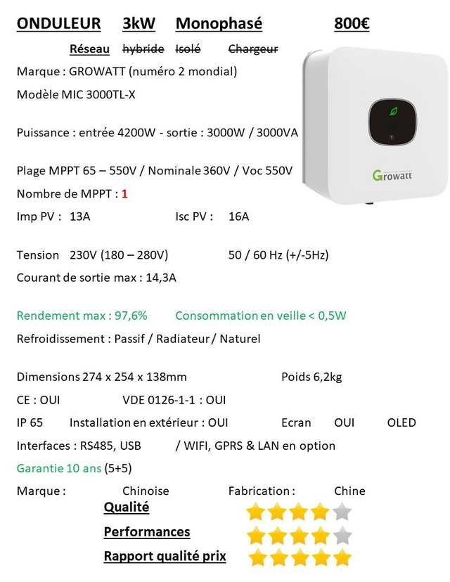 Points faibles (oui, nous on le dit) Growatt = qualitatif mais made in China