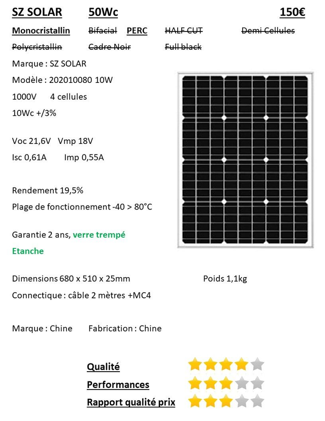 Panneaux Solaires 50Wc SZ Solar