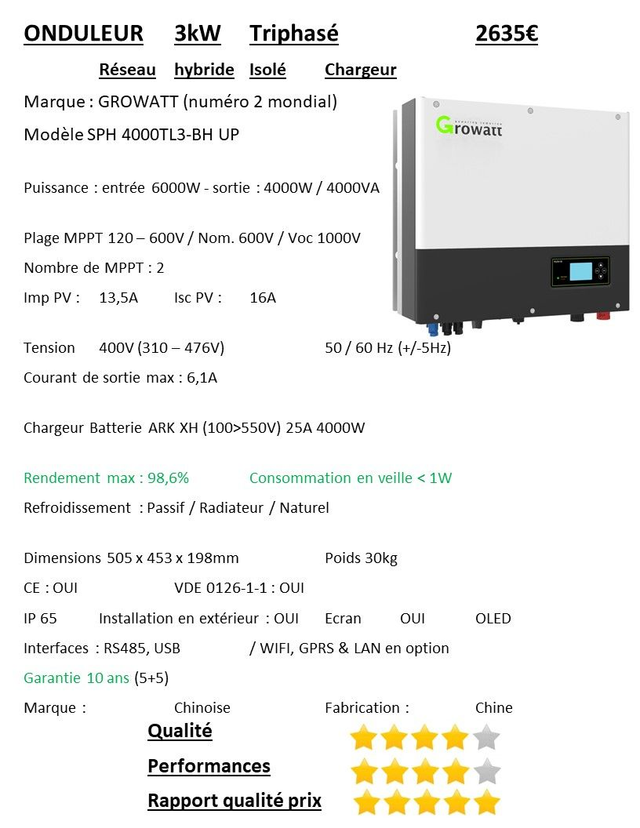 Onduleur Growatt, numéro 2 mondial, qualitatifs, garantis 10 ans